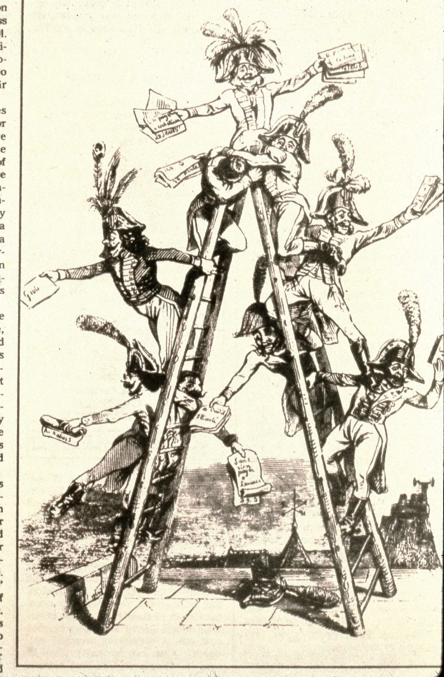 La Concurrence from Un autre monde. 1844 hand-colored wood engraving. J.J. Grandville