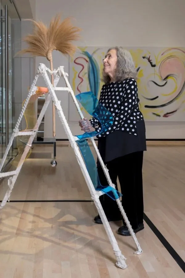 In 1973, I created a found object sculpture that I call my ladder sculpture, but its official name is Dance of Destiny. The story of the sculpture began when I visited a small farm on land that was being cleared for a shopping mall. The farmer’s family had been there for a hundred years, so there was lots of accumulation for an eager artist to sift through to create found object sculptures. I found an aluminum ladder - perhaps about eleven feet - and I asked the farmer to bend it in two, like a triangle, and weld it for me in that position. The ladder was going to be ready for me in four days, when I returned from a quick New York weekend trip.